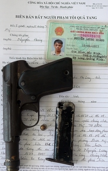 Theo thông tin ban đầu, trước khi bị công an bắt giữ, Hoàng mang theo súng ngắn đến nhà một người ở TP Phan Rang - Tháp Chàm để đòi nợ.