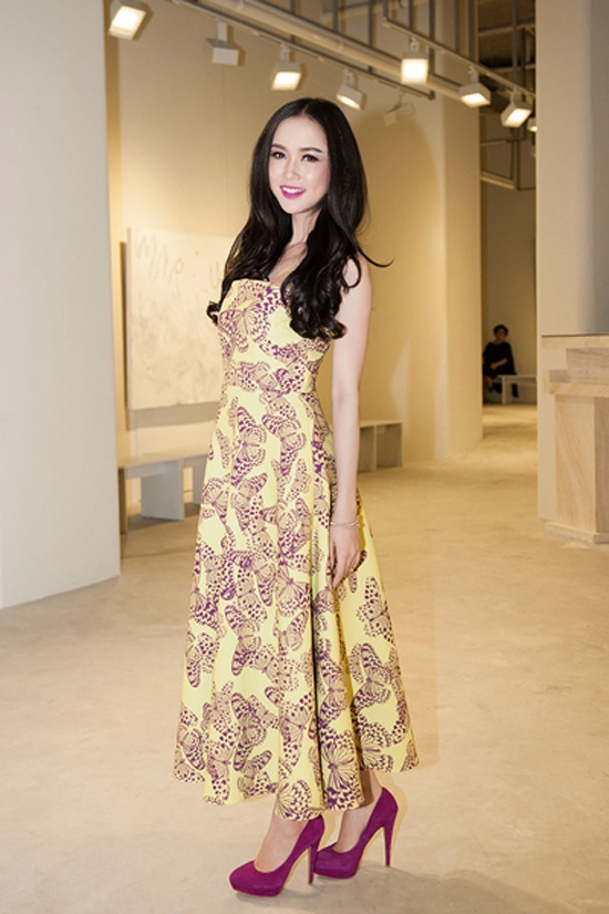| Màu sắc của chiếc đầm này là kẻ thù với làn da sẫm màu của Lê Phương. |