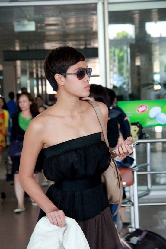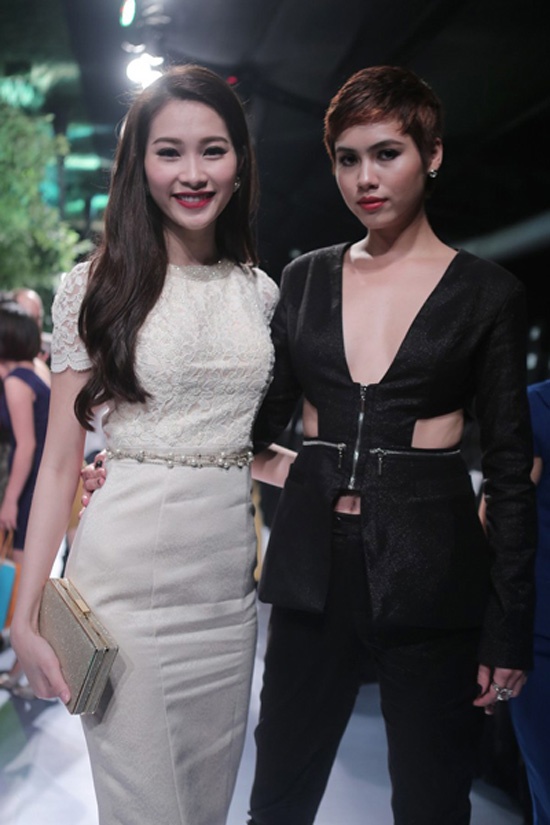 | Chiếc đầm màu xanh tím này làm Ngô Thanh Vân lộ khuyết điểm là làn da ngăm đen. Hơn nữa nhìn cô cũng có vẻ thấp đi so với vóc dáng thường ngày khi diện trang phục này. |