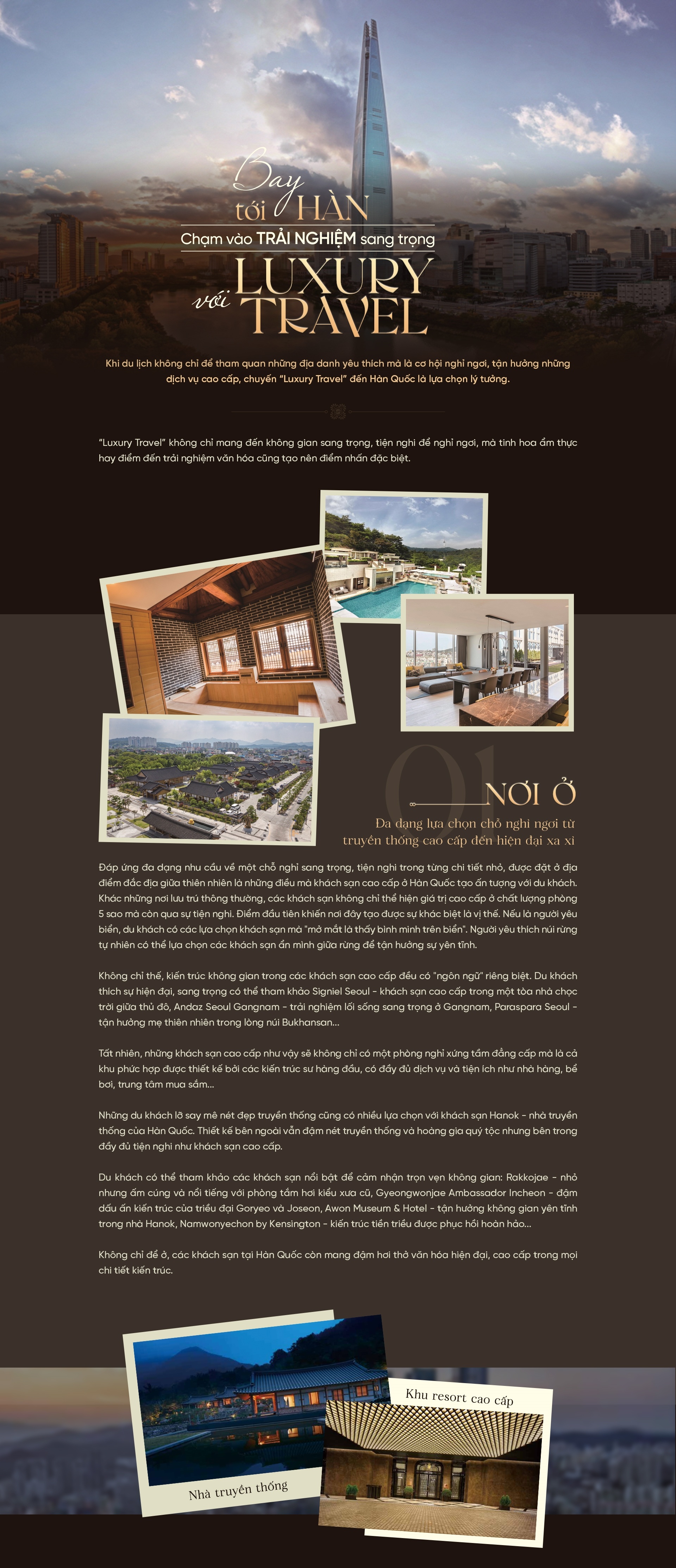 Khi du lịch không chỉ để tham quan những địa danh yêu thích mà là cơ hội nghỉ ngơi, tận hưởng các dịch vụ cao cấp, chuyến “Luxury Travel” đến Hàn Quốc là lựa chọn lý tưởng.