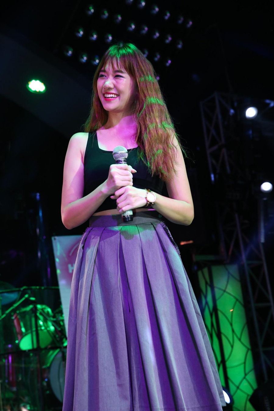 | Trong buổi gặp gỡ fan, nữ ca sĩ đến từ Hàn Quốc diện trang phục đơn giản gắn liền với cô trong suốt thời gian qua. Trên sân khấu, giọng ca 31 tuổi chia sẻ niềm vui cũng như sự cám ơn sâu sắc đối với tình cảm người hâm mộ dành cho cô. |