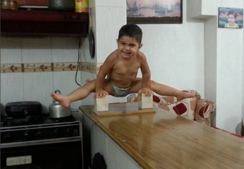 | Nhiều người kinh ngạc khi chứng kiến cậu bé Arat Hosseini (2 tuổi, sống tại Mazandaran, Iran) thực hiện những động tác phức tạp của môn thể dục dụng cụ như vận động viên chuyên nghiệp. |