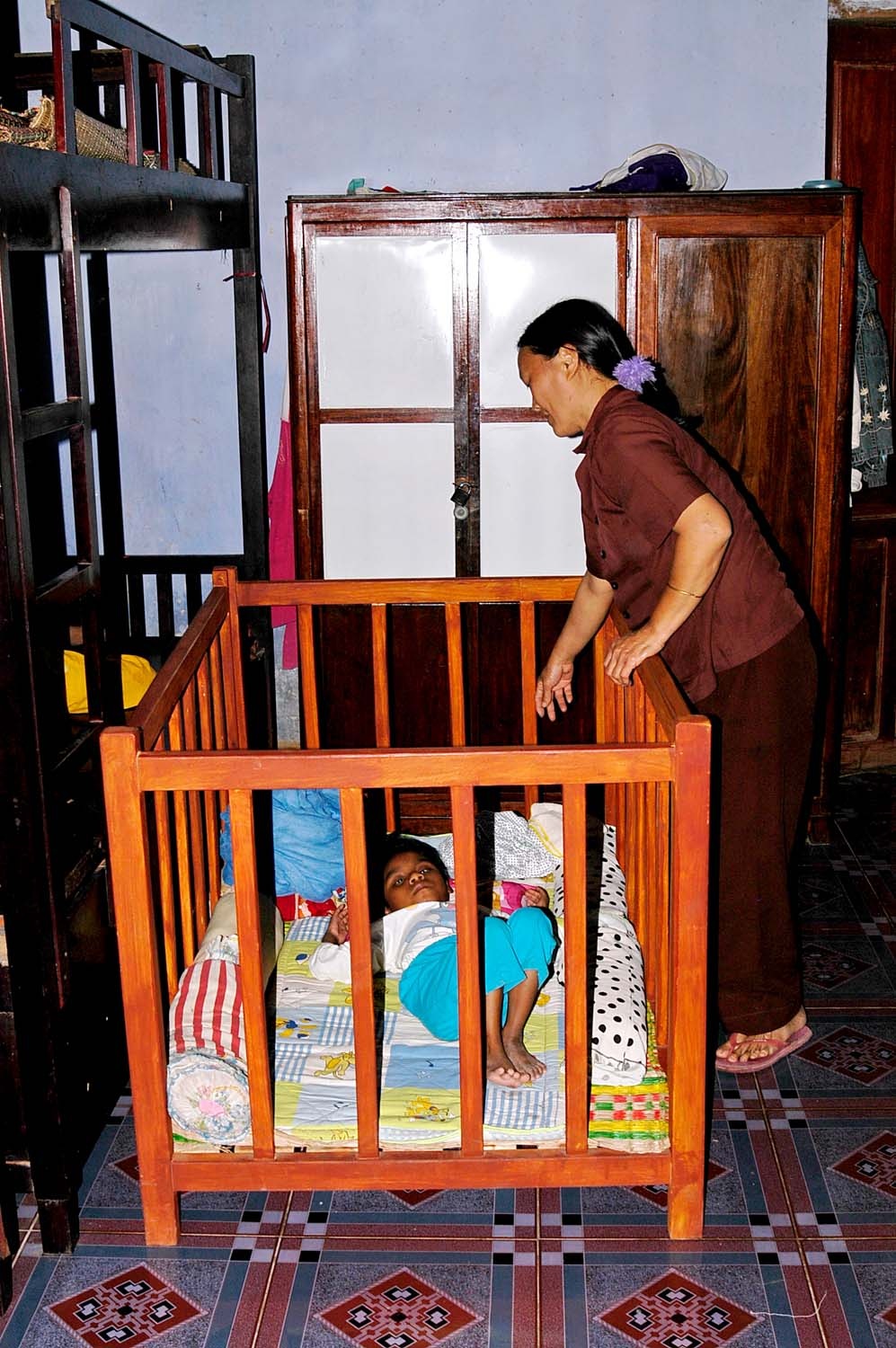 Chị Tô Thị Thắm, một Phật tử của chùa, là người mẹ nuôi trực tiếp chăm sóc cho Ni hàng ngày.