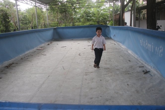 Bể bơi của trường Tiểu học Phan Phu Tiên sau khi hết nguồn tài trợ. Ảnh: Tuổi Trẻ. |
