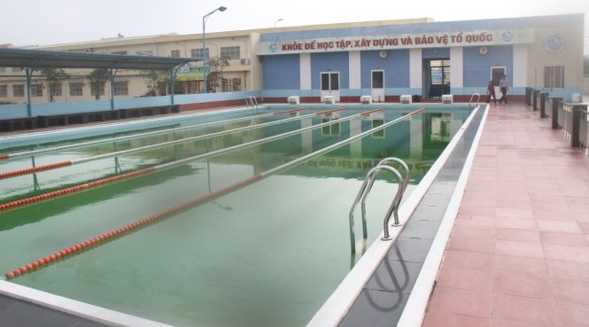 Bể bơi của trường THCS Lương Thế Vinh được đầu tư khang trang nhưng sau khi ngân sách hết hỗ trợ thì bị lỗ, thu không đủ chi. Ảnh: Tuổi Trẻ. |