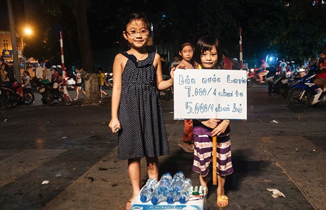Nhóm thực hiện cho biết, bé gái trong ảnh đứng bán nước ở khu vực vỉa hè quanh Hồ Gươm. Mức giá em bán khá rẻ so với những người bán hàng rong khác nên được nhiều du khách mua ủng hộ. Không tiết lộ danh tính nhưng câu chuyện đáng yêu, cùng mục đích nhân văn bé gái làm vẫn khiến dân mạng ngưỡng mộ.![]() |