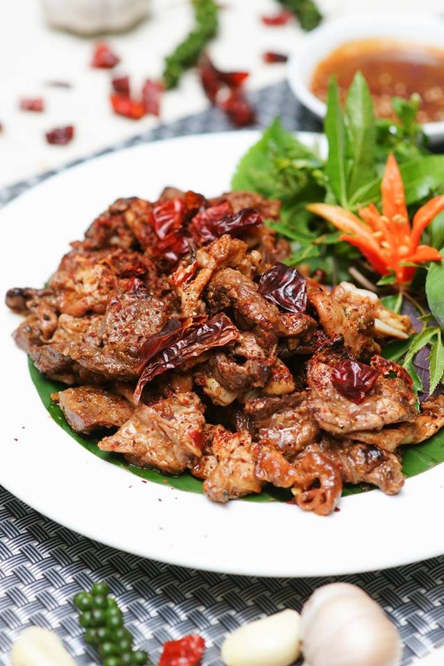| Lòng xào ớt khô kiểu Tây Bắc đượm thơm ngon, giòn sần sật và cay nồng làm hài lòng những người thích ăn cay. |