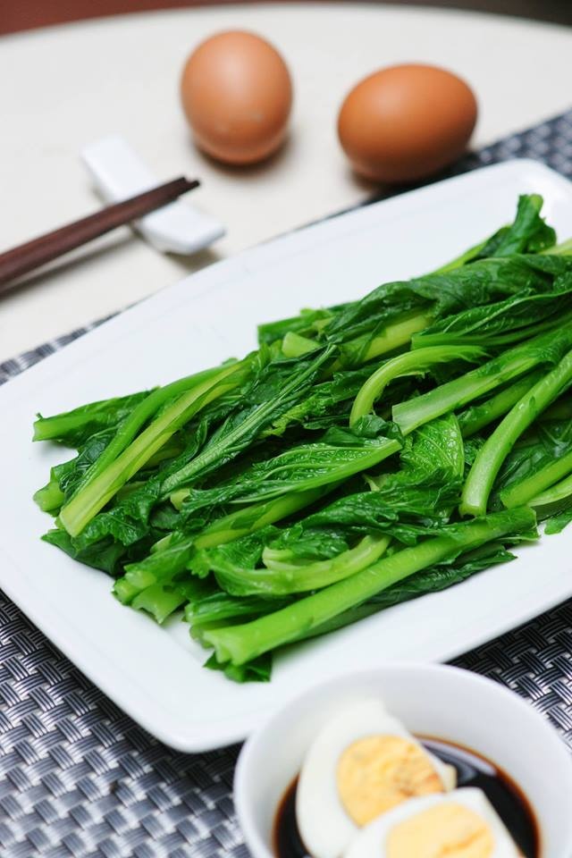 Rau cải Mèo hấp chấm với nước tương và trứng luộc thơm ngậy.