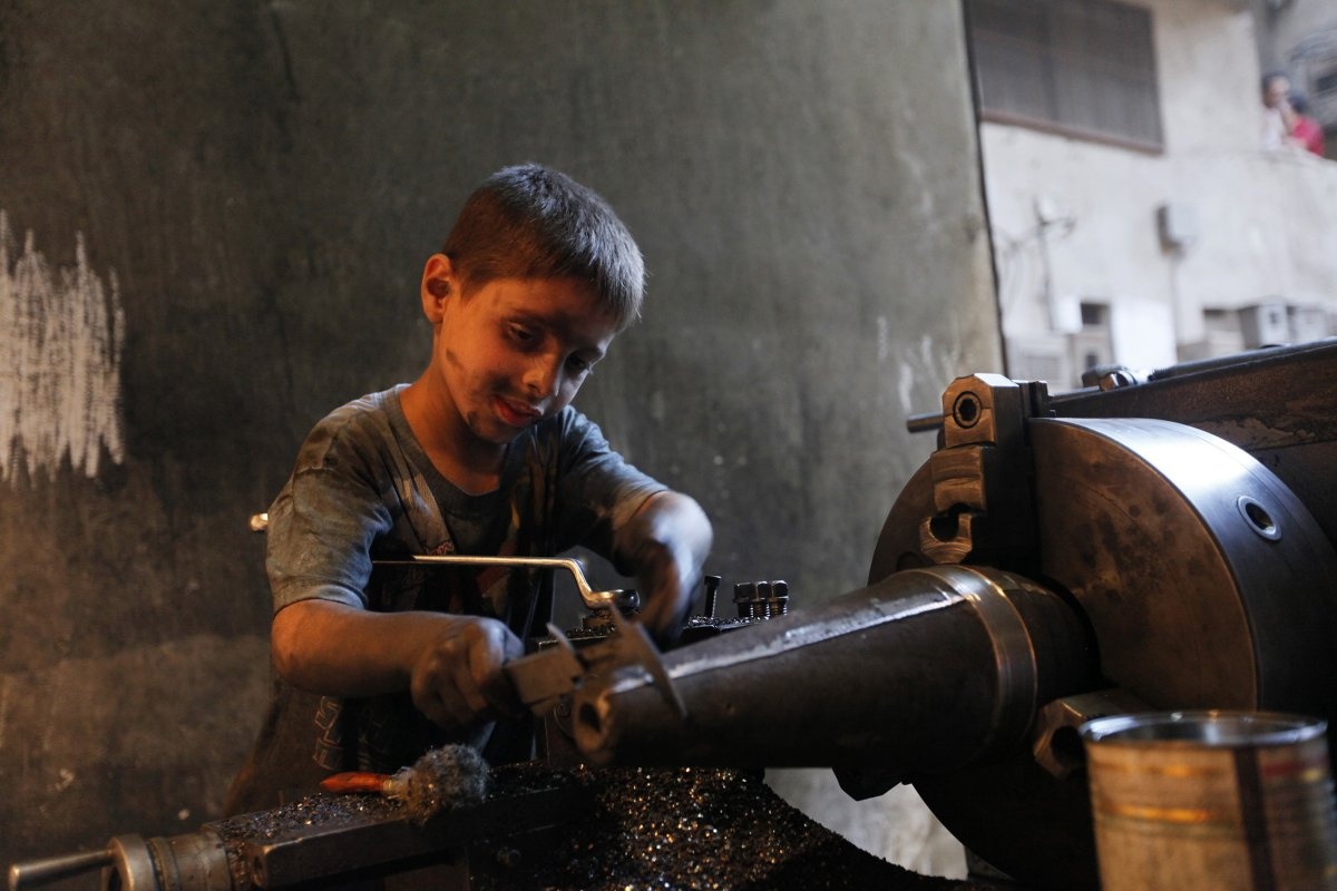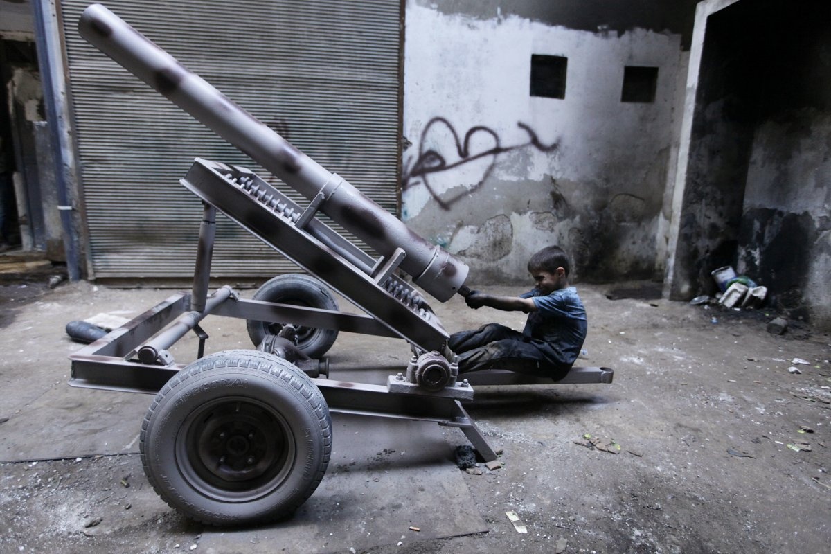 | Issa thậm chí có thể sửa một khẩu pháo tự chế. Mỗi ngày, cậu làm việc 10 tiếng cùng bố, trừ thứ sáu. Ảnh: Reuters |