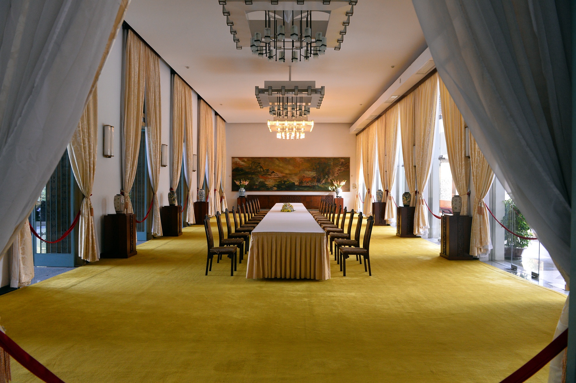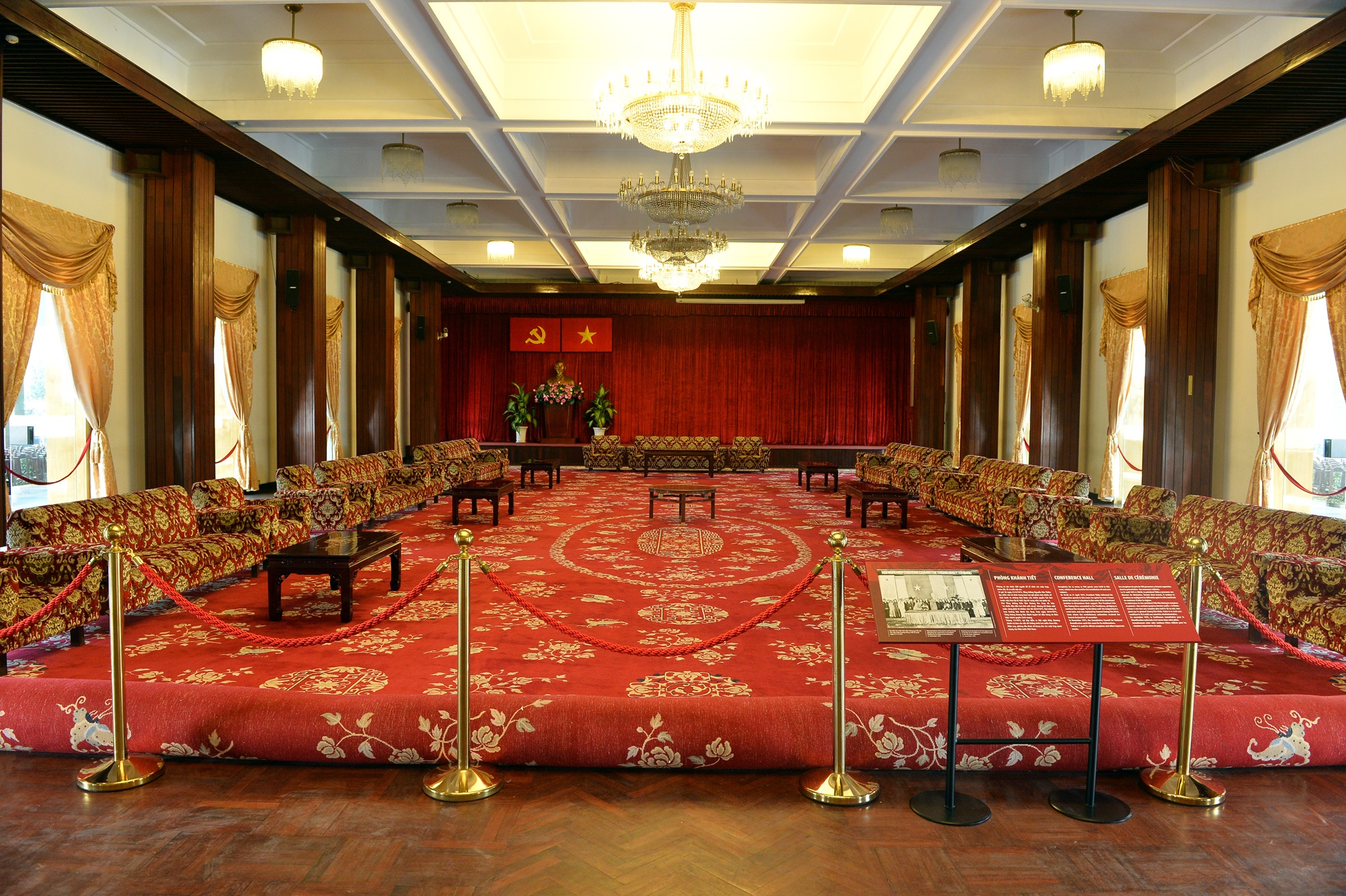 | Phòng Đại yến, nơi tổ chức các cuộc chiêu đãi với sức chứa hơn 100 khách. Ngày 31/10 năm 1967, nơi đây diễn ra bữa tiệc nhân lễ nhậm chức của Tổng thống Nguyễn Văn Thiệu và Phó Tổng thống Nguyễn Cao Kỳ.