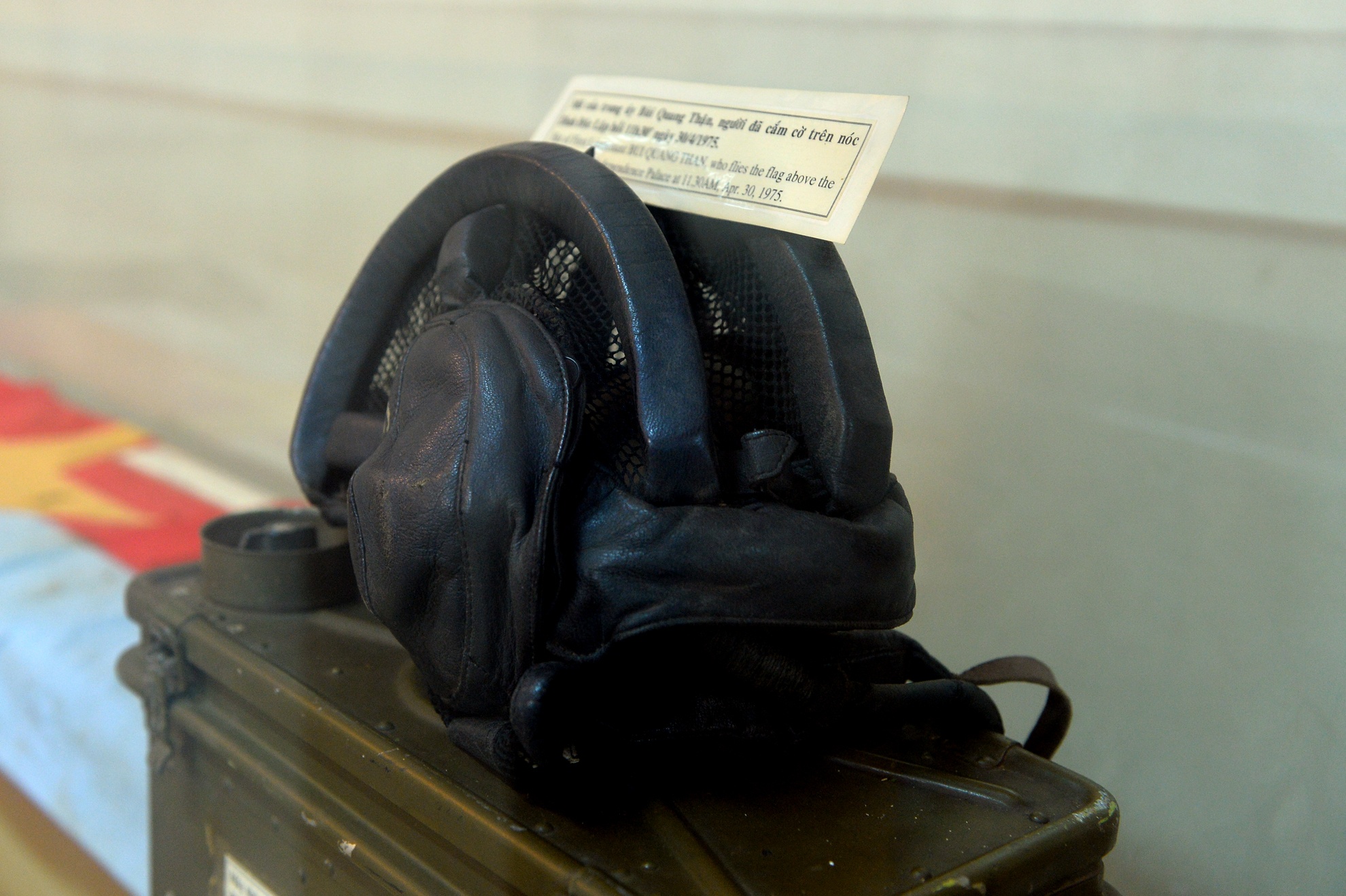 | Mũ của trung úy Bùi Quang Thận, người đã cắm cờ trên nóc Dinh Độc Lập lúc 11h30' ngày 30/4/1975.