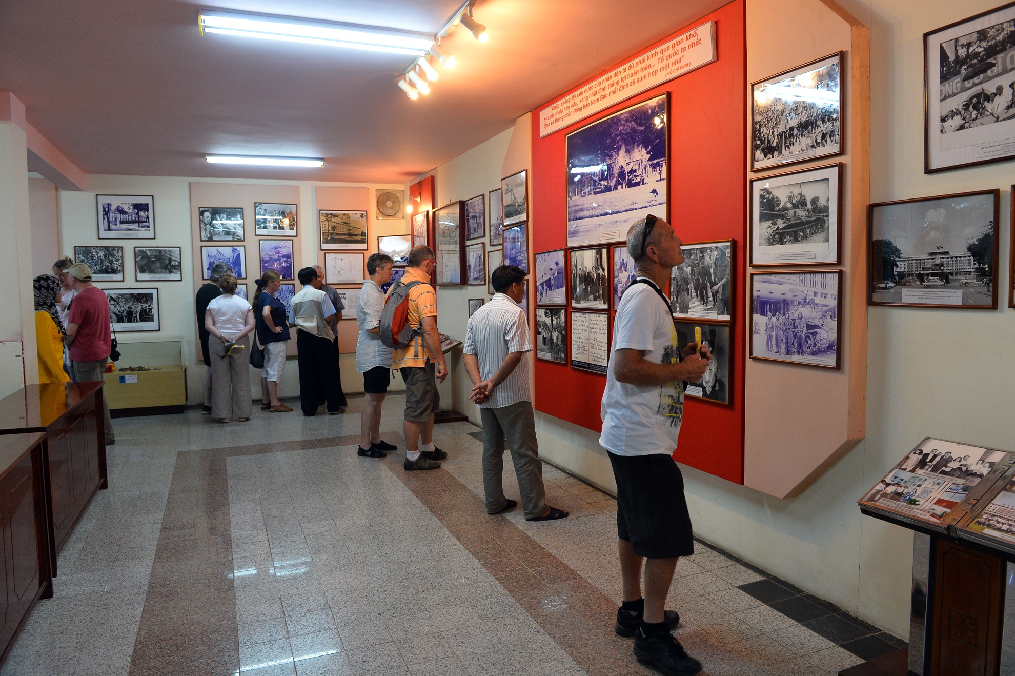 | Khu vực trưng bày các bức ảnh và vật dụng thời kỳ kháng chiến chống Mỹ, đặc biệt là những tư liệu lịch sử về cuộc Tổng tiến công và nổi dật mùa xuân 1975.