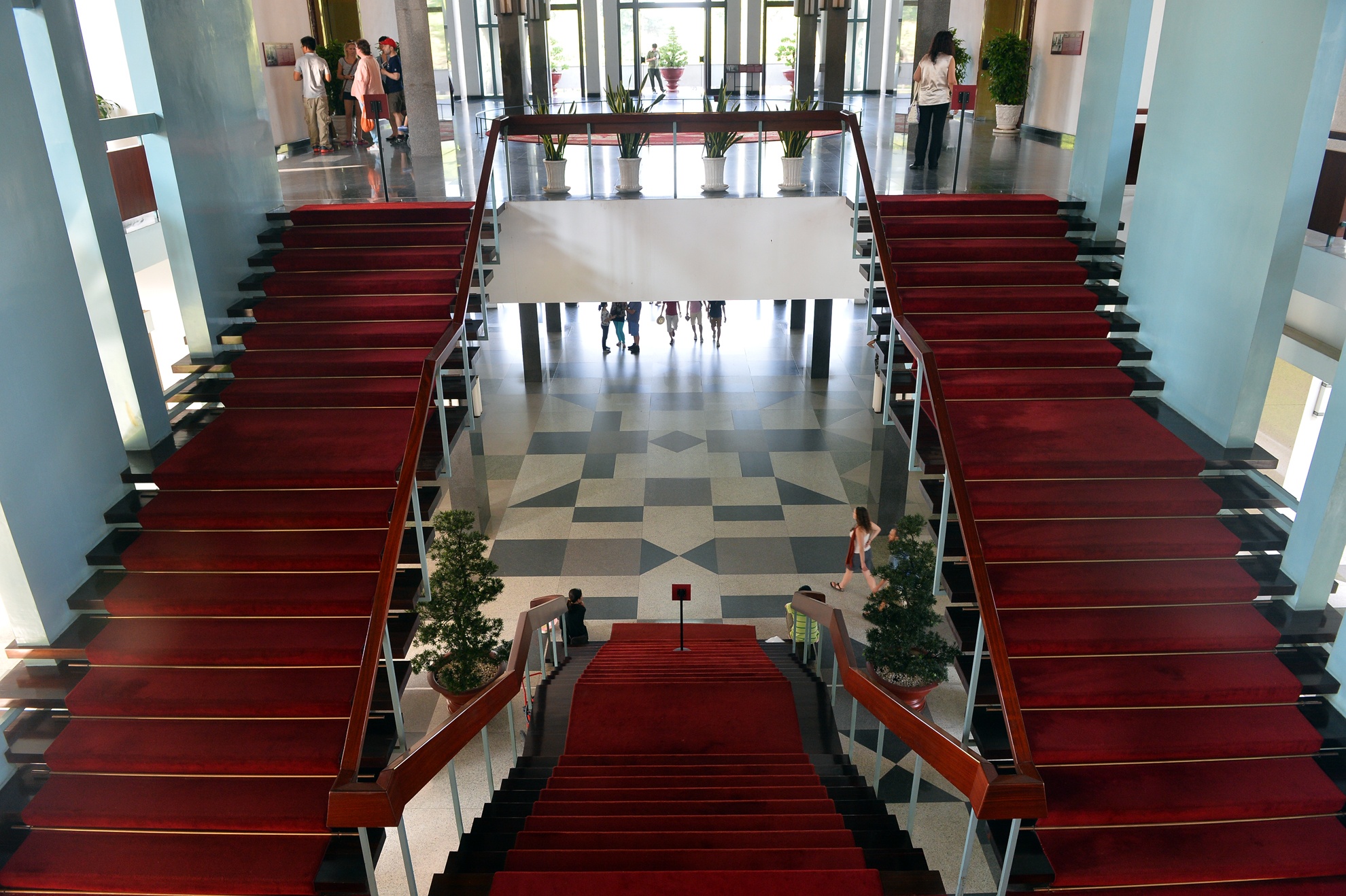 | Lối lên xuống trải thảm nhưng không được sử dụng giữa tòa nhà Dinh Độc Lập.