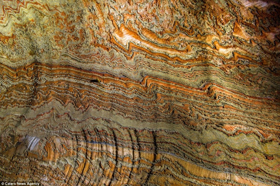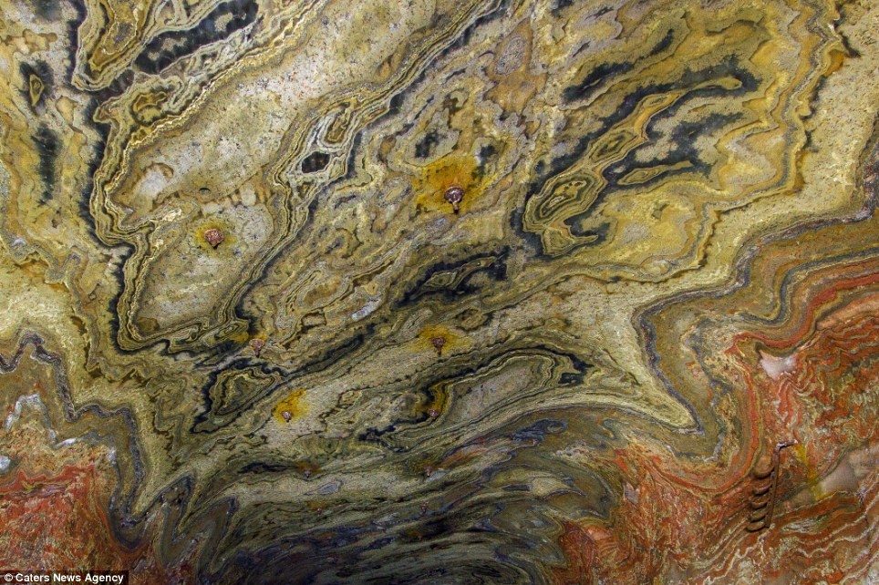 Mishainik cho biết, anh từng nhiều lần ngủ đêm bên dưới khu mỏ này để thỏa sức chụp hình những họa tiết trên vách đá. Ảnh: CNA. |