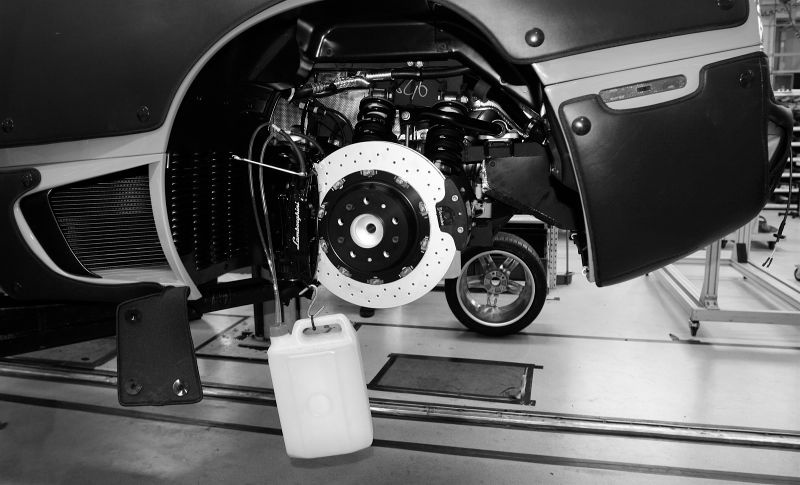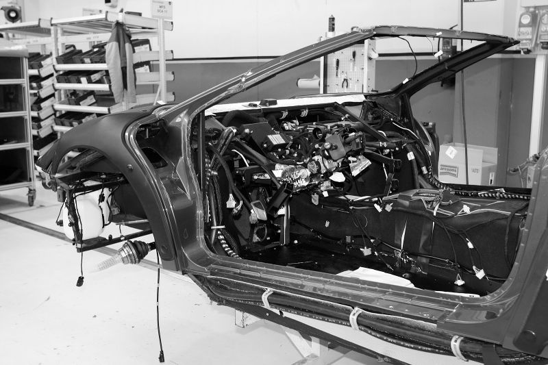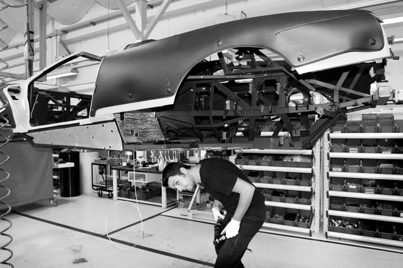 | Một bộ khung xe đang được hoàn thiện. Tại Lamborghini, gần như không có quá nhiều điều thay đổi theo thời gian. Các công đoạn sản xuất sẵn sàng được công bố cho khách tới xem bởi mỗi người thợ thủ công ở đây tự tin rằng sự nhiệt huyết họ thổi vào trong các sản phẩm của mình không nơi nào có thể làm được. Mỗi chiếc xe, mỗi bộ khung hay chỉ đơn giản là một chi tiết nào đó trên xe đều có thể trở thành poster dán trong phòng ngủ, đặt làm nền điện thoại hay treo ở bất kỳ đâu trong phòng làm việc, trong nhà, phòng ngủ, phòng tắm, nhà vệ sinh,... của họ. |