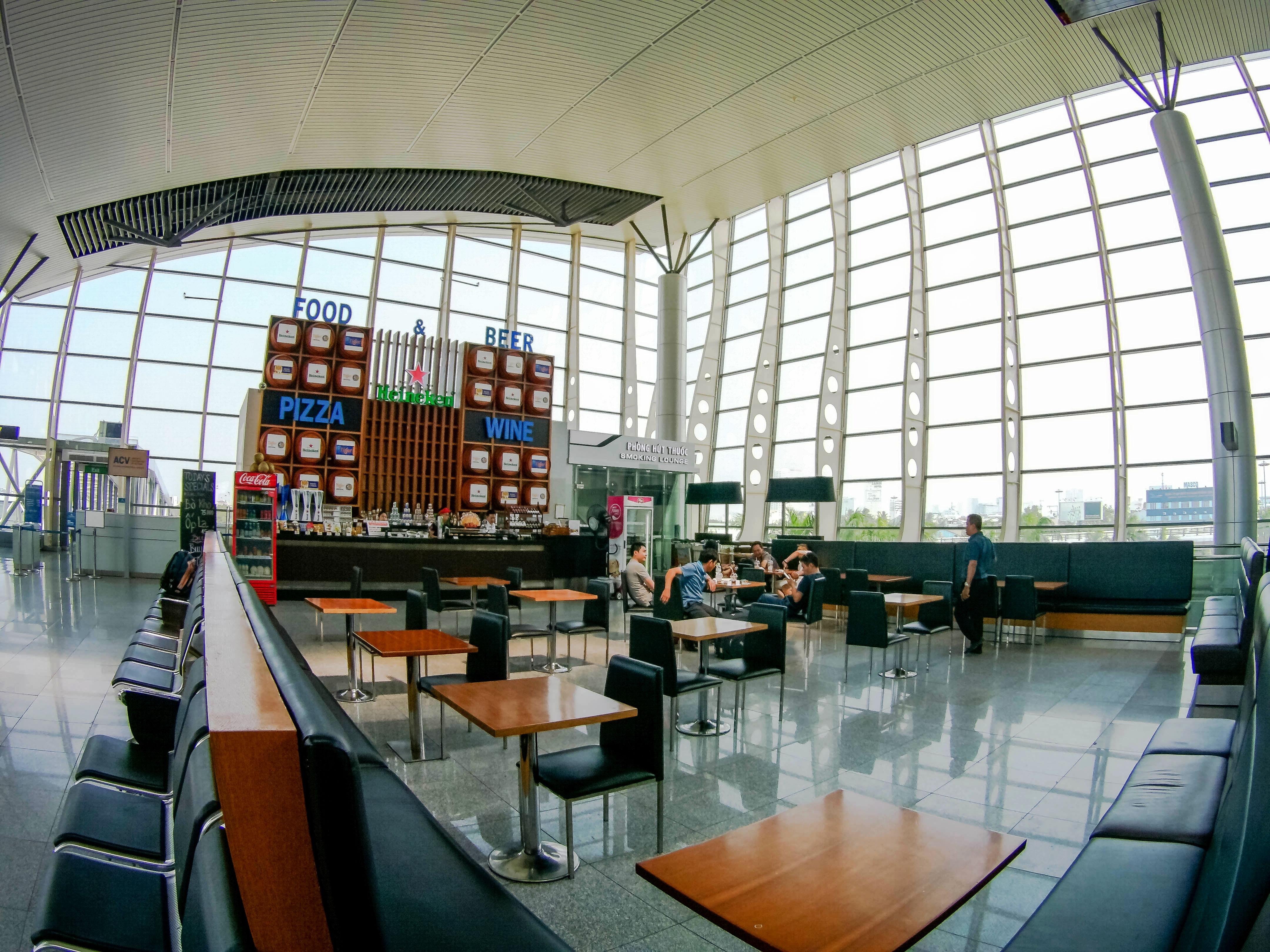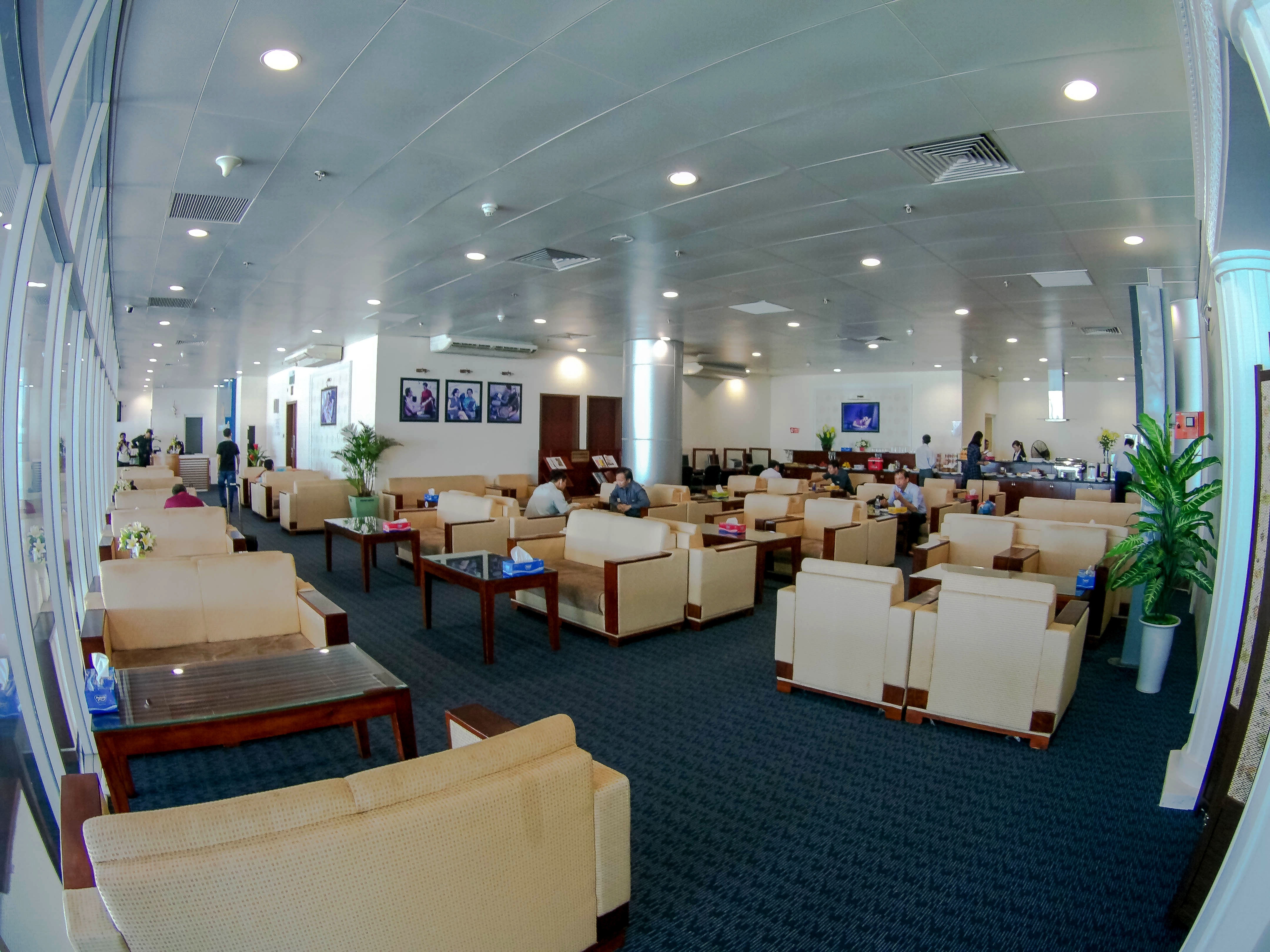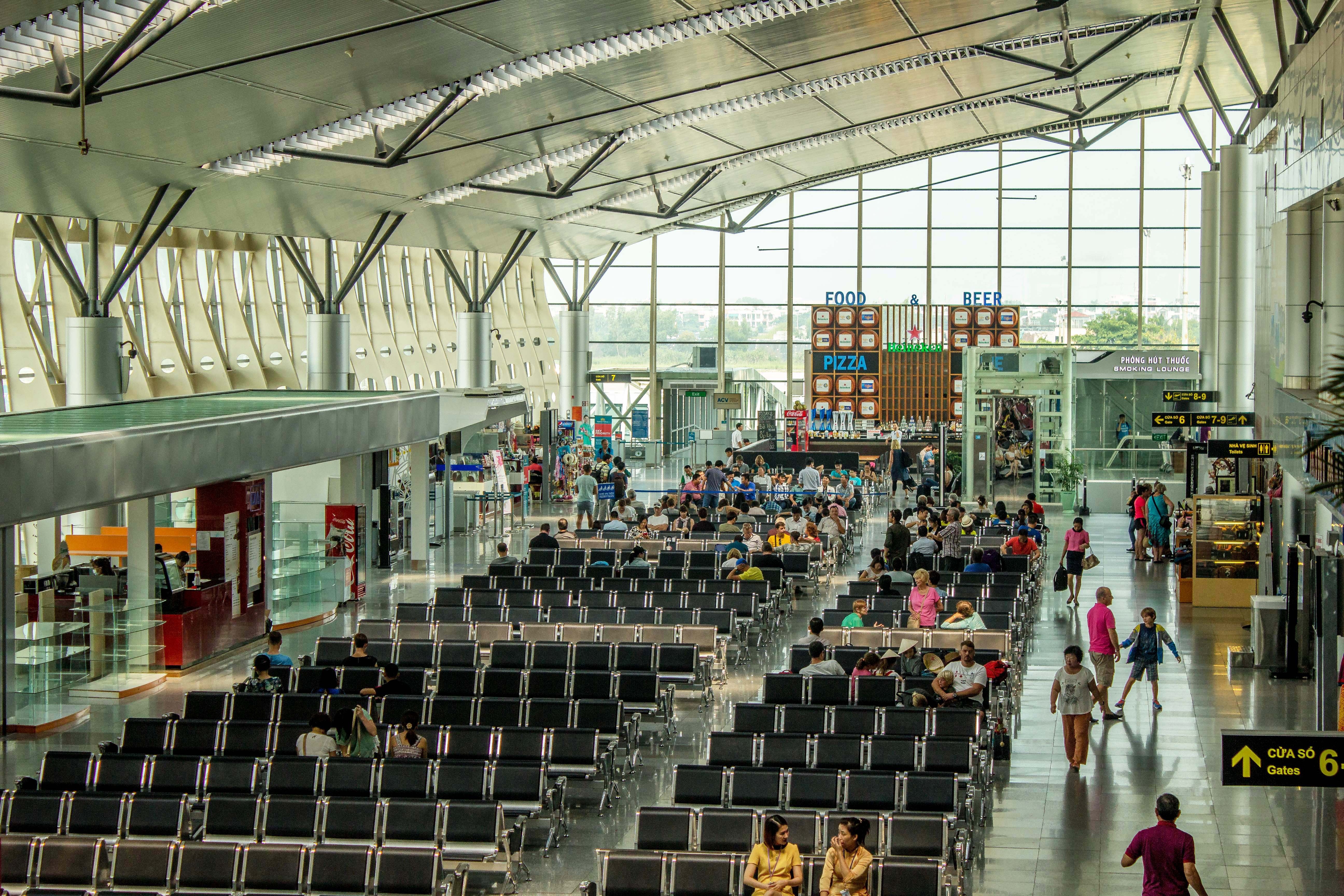 | Phòng chờ lên máy bay rộng gần 3.500 m2. Tại đây, hành khách được sử dụng miễn phí nước uống và Wi-Fi. |