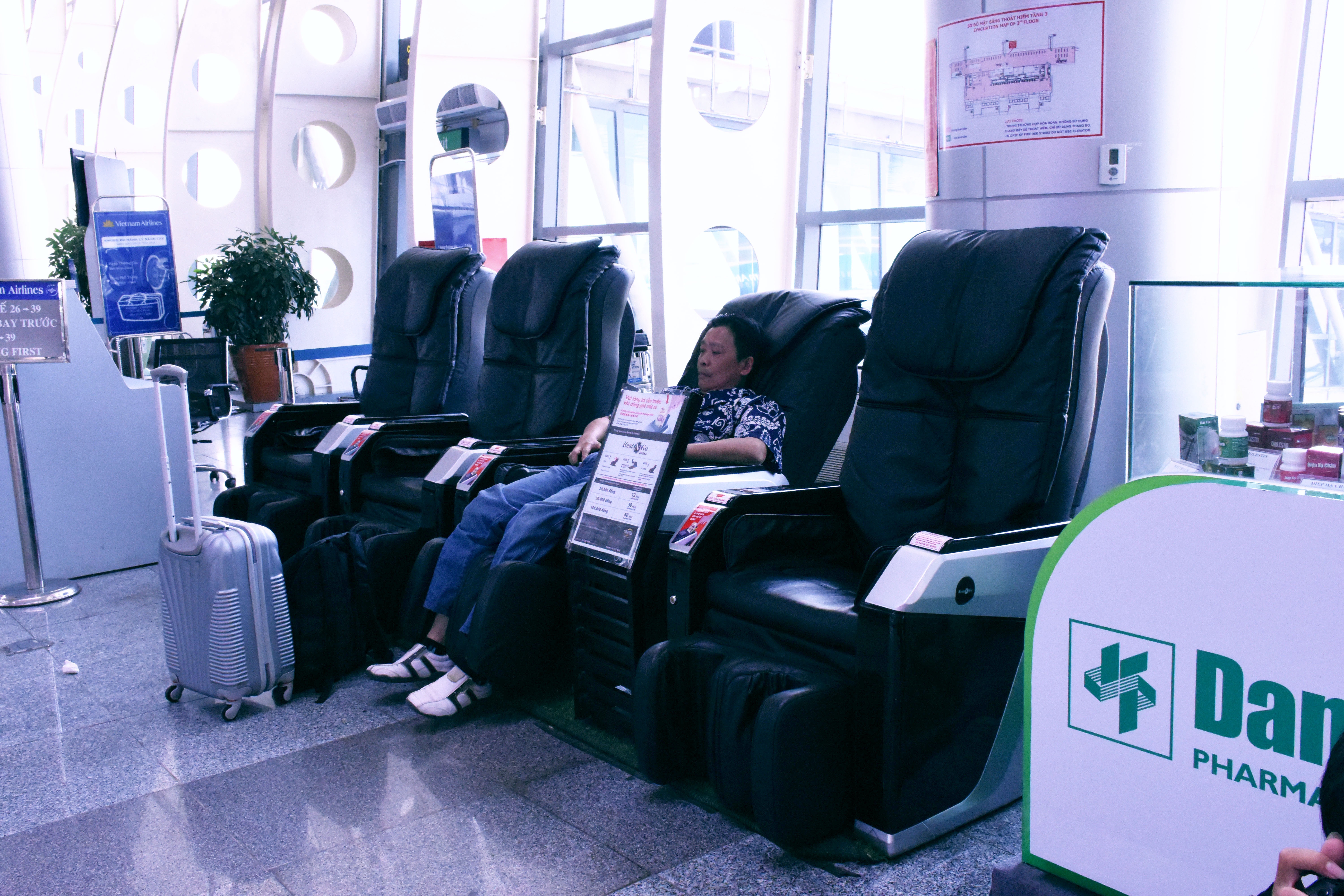Trong phòng này có ghế massage điện, giúp hành khách thư giãn trước giờ lên máy bay.