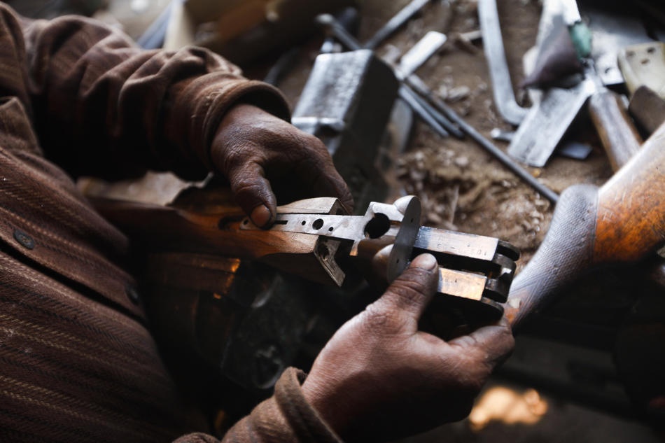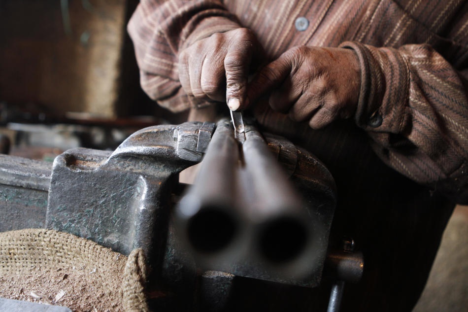 | Các khẩu súng được chế tạo bằng những công cụ thô sơ. |