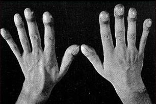 | Móng tay có đường cong trong bệnh phổi kẽ. |