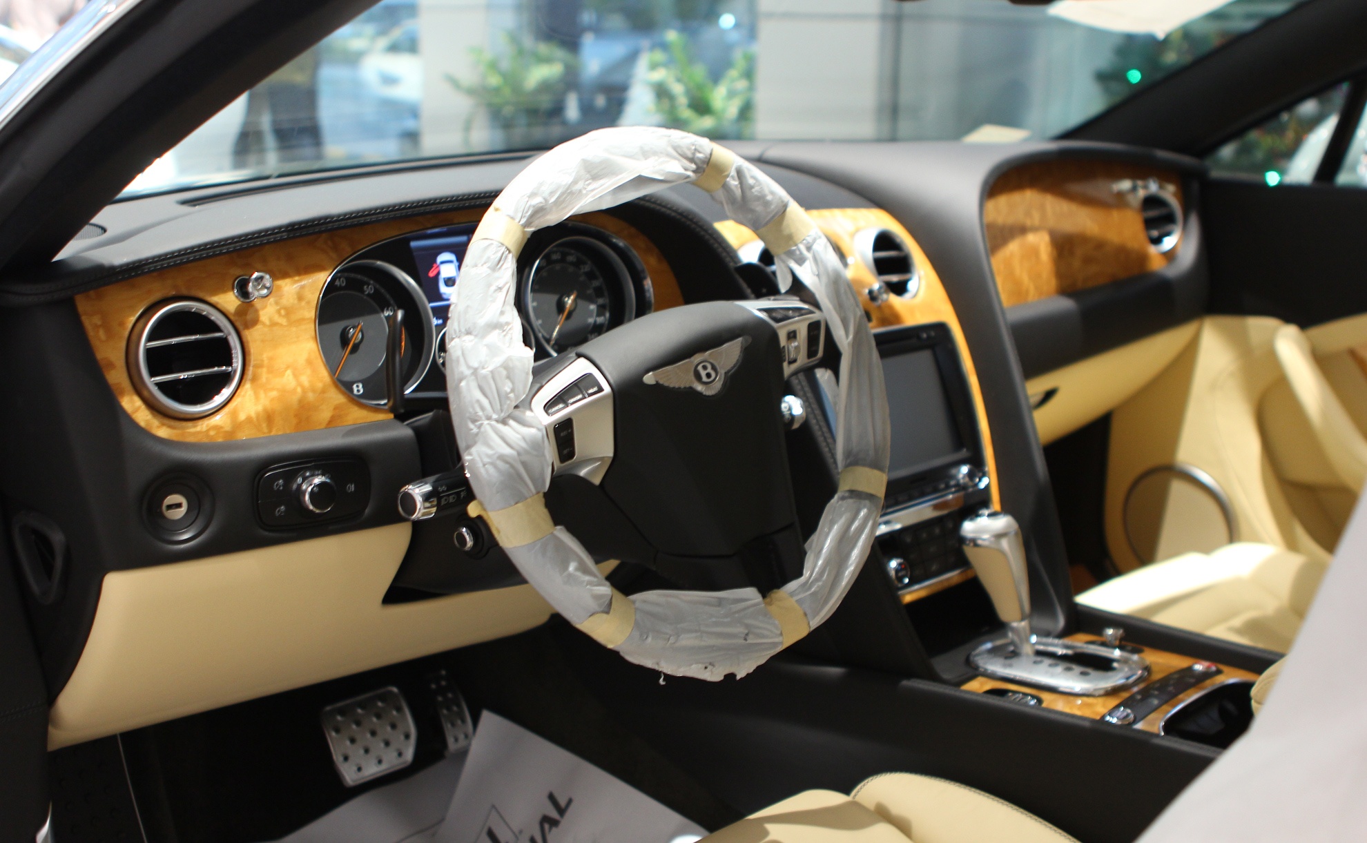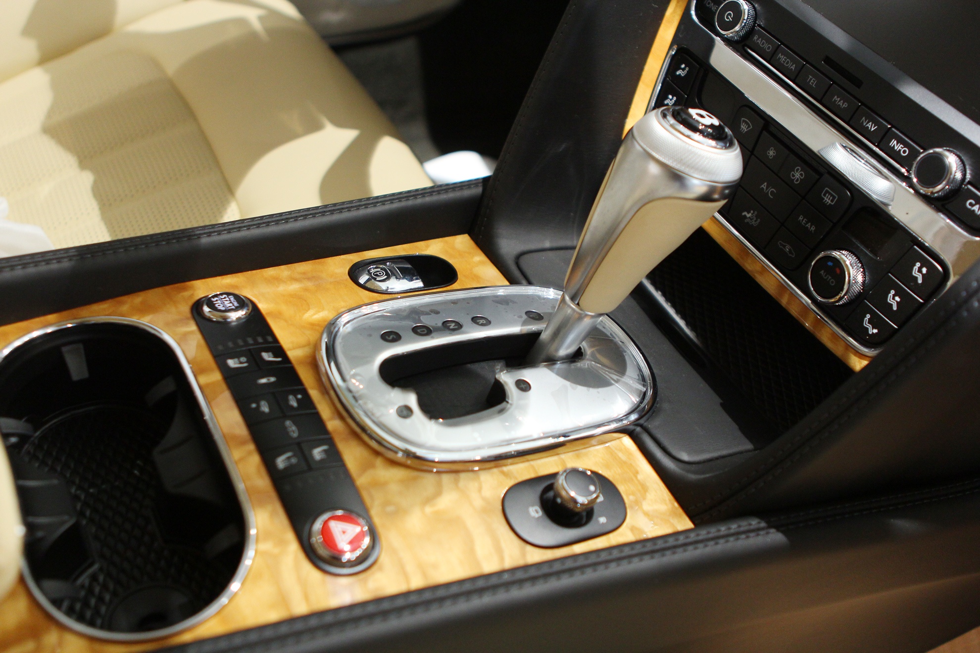 | Màu nội thất chính là vàng nhạt Magnolia kết hợp màu phụ và thảm đen bên cạnh gỗ ốp Dark Fiddleback. Vô-lăng 3 chấu thể thao |