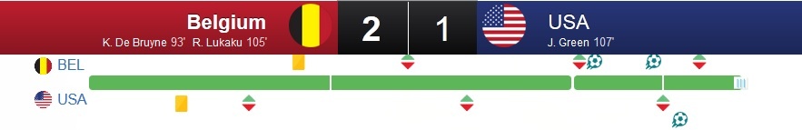 Đúng lúc này trọng tài thổi còi kết thúc 120 phút thi đấu giữa Bỉ và Mỹ. Chung cuộc, bầy Quỷ đỏ giành chiến thắng với tỷ số 2-1, qua đó giành quyền vào tứ kết.