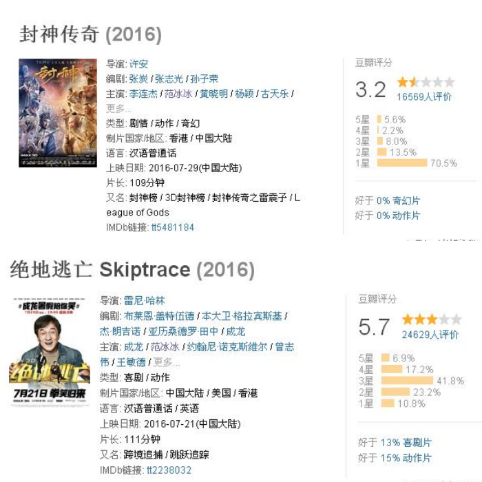 | Hai dự án được đầu tư lớn có sự góp mặt của Phạm Băng Băng đều bị đánh giá thấp trên các trang phim ảnh. Ảnh: Douban. |