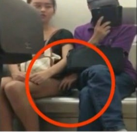 | Hành động rờ đùi của thanh niên trên tàu điện ngầm. |