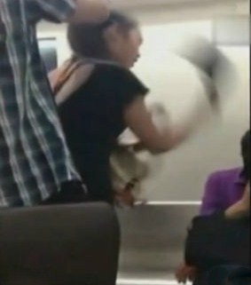 | Không chịu đựng được, cô gái đứng lên chửi rủa và ra đòn với tên "dê xồm" này. |