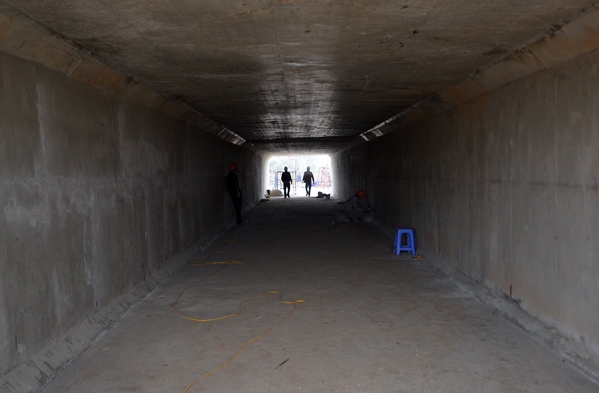 Ngày 12/11, hầm chui đã được gấp rút hoàn thiện, nhưng hai đường dẫn đầu hầm vẫn còn ngổn ngang bùn đất.