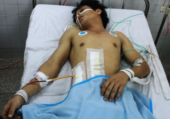 | Hoàng Quang Tiếp đang được chữa trị tại bệnh viện. |