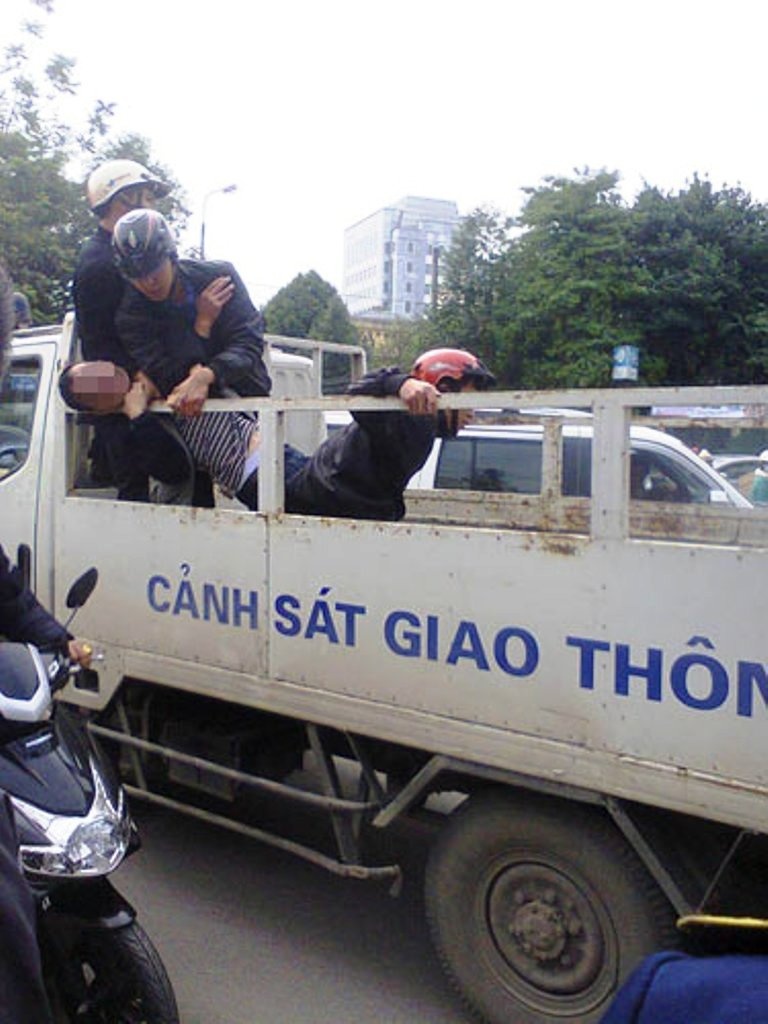 Sau một hồi giằng co, đối tượng được lực lượng chức năng áp tải lên xe CSGT đưa về trụ sở Công an TP. Thanh Hoá. Qua xác minh, đối tượng “ăn vạ” tên là Nguyễn Mạnh H. (SN 1990), trú tại phường Tân Sơn, TP.Thanh Hoá.
