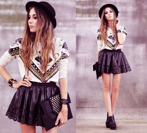Nếu định đi dự tiệc, đừng bỏ qua áo da dáng ngắn và váy xòe hoa.