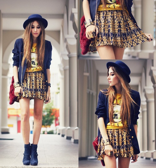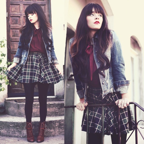 Hay trẻ trung một chút với phong cách nữ sinh của váy kẻ và những chiếc áo da khỏe khoắn.
