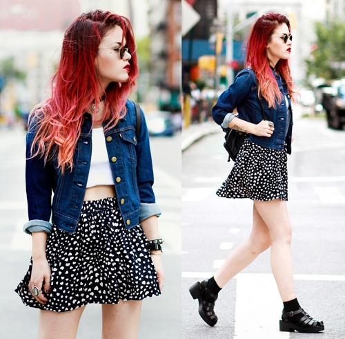 Phong cách trẻ trung này là gợi ý hấp dẫn cho những ngày xuống phố gió nhẹ. Việc sử dụng màu sắc cũng không cần quá cầu kỳ, bởi denim rất dễ tính, có thể phù hợp với nhiều kiểu váy.