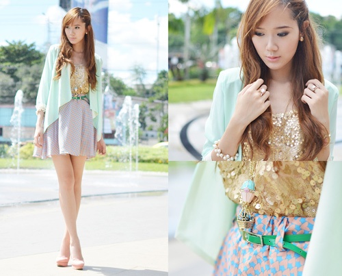 Phong cách rất thích hợp với các bạn gái ưa vẻ đẹp dịu dàng, duyên dáng. Bạn cũng có thể sử dụng cách mix này khi tới công sở hay dự tiệc nhẹ.
