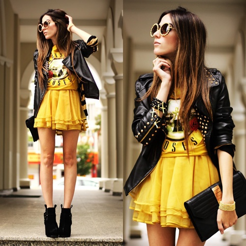 Với những ngày lạnh hơn thì áo da là một lựa chọn thú vị để làm ấm cơ thể cho những ai yêu váy xòe.