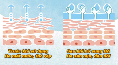 Khoa học đã chứng minh, một làn da khỏe mạnh có độ ẩm trung bình ờ mức 30%. Nhiệm vụ duy trì con số 30% này được thực hiện bởi dưỡng chất Hyaluronic Acid (HA) có sẵn trong da - 1gam HA hấp thu đến 6 lít nước. Tuy nhiên HA lại bị mất dần theo thời gian và do tác động của ngoại cảnh (nắng, gió, khói bụi, thay đổi thời tiết, thay đổi nội tiết…). HA giảm, kéo theo độ ẩm da không còn cân bằng, da trở thô ráp, kém mịn màng, lỗ chân lông to ra và nếp nhăn dần xuất hiện.