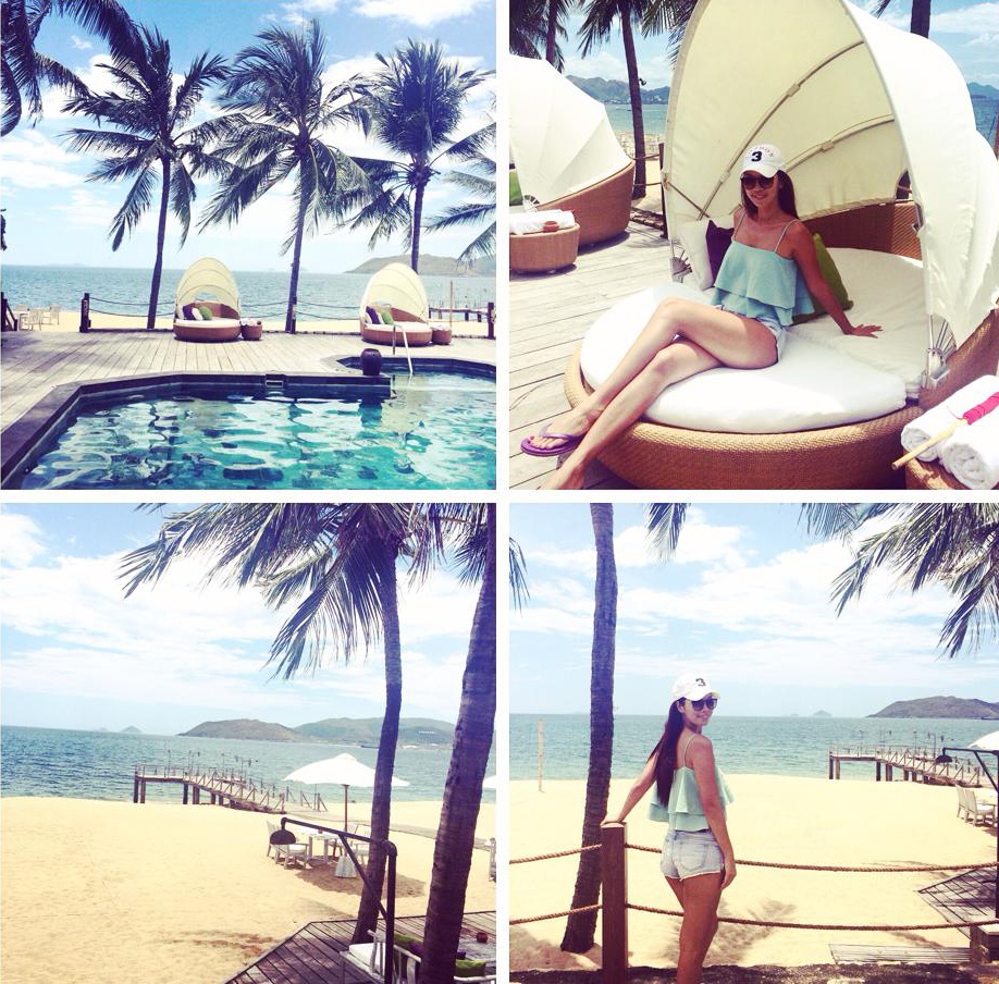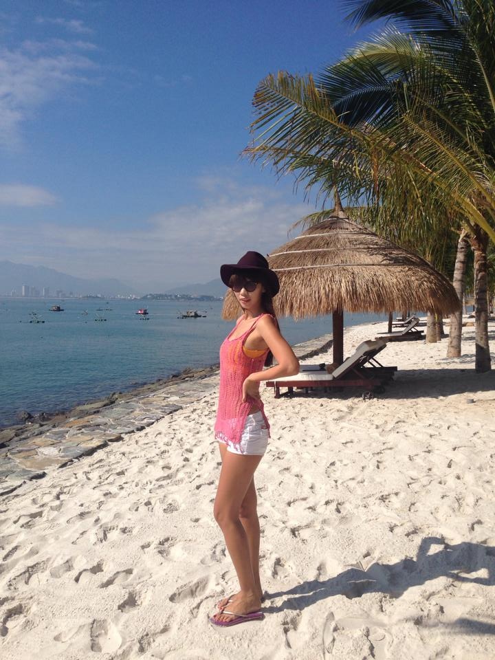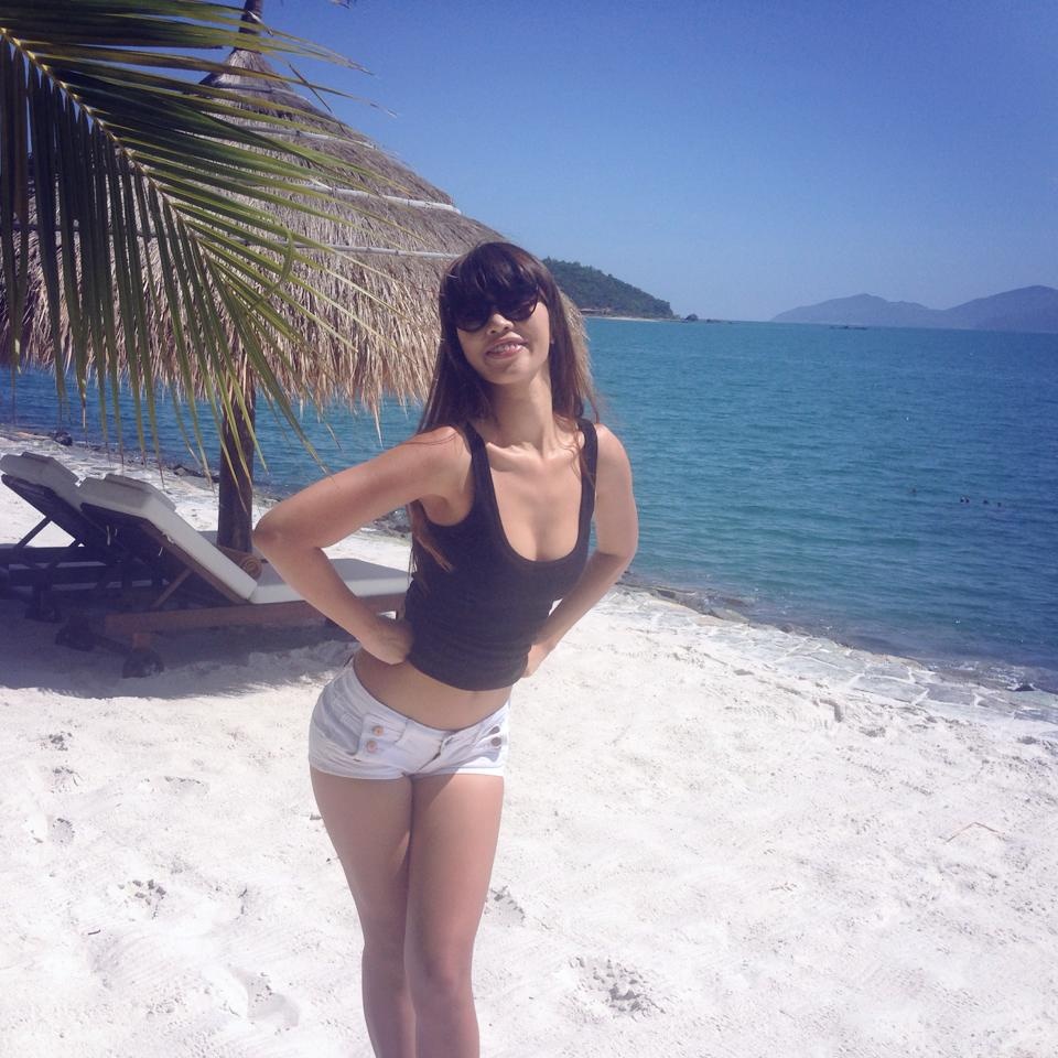 Quần shorts không thể thiếu trong mùa đi biển của Hà Anh với cách mix gợi cảm kèm bikini.