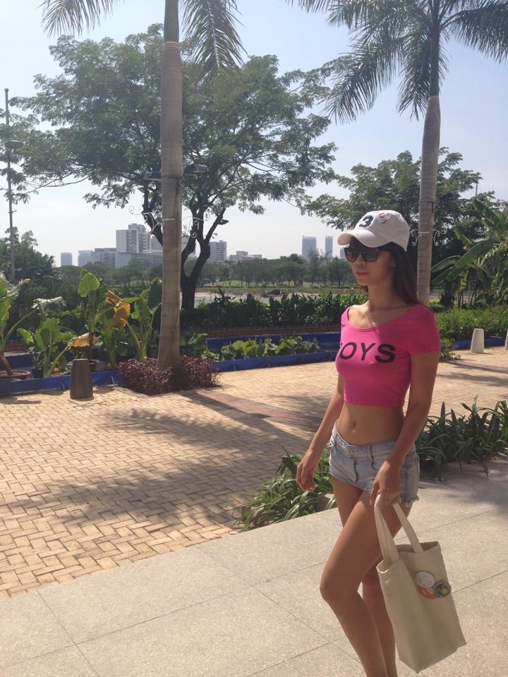 Trang phục dạo phố của Hà Anh cũng không thể thiếu chiếc quần shorts trẻ trung.