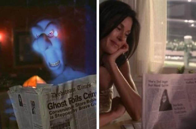 | Thực tế, tờ báo đặc biệt này là đạo cụ, do The Earl Hays Press - một công ty ở California chuyên sản xuất những sản phẩm giả như đồ ăn, nhãn rượu, báo... cho các đoàn làm phim. Ảnh trên là trong bộ phim Casper (1995) và Desperated housewives (2004 - 2012). |