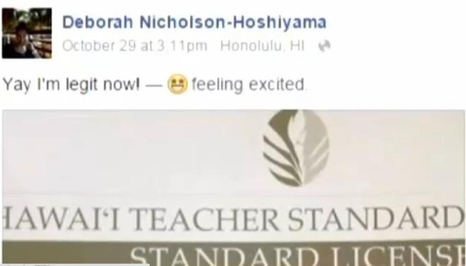 Đại diện văn phòng cảnh sát Arizona cho hay, cô giáo người Mỹ không hiểu vì lý do gì lại được cấp giấy phép giảng dạy tại Hawaii kể từ ngày 29/10 và đến hôm 7/11 có thể bắt đầu buổi làm việc đầu tiên ở trường Voyager Public Charter.