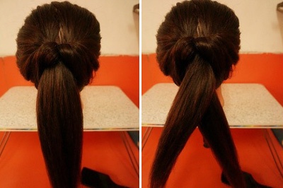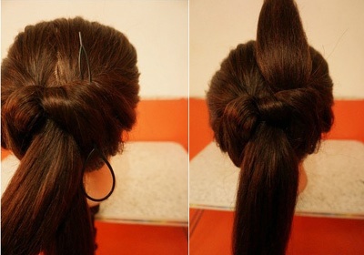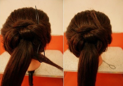 1 lọn tóc vào phần bầu tròn và kéo lên phía trên.