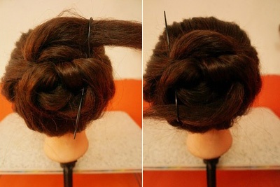 định đuôi tóc bằng kẹp ghim. Bạn đã có 1 búi tóc sang trọng và quý phái.