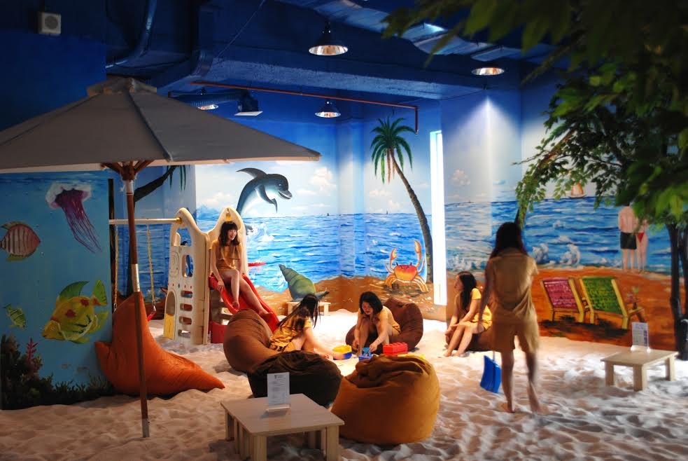 Amazon World cũng bố trí khu vực cà phê bãi biển với bãi cát trắng mịn cùng những bức tranh 3D rực rỡ. Đây sẽ là địa điểm chụp ảnh tuyệt vời cho khách hàng. Menu đồ uống phong phú nhưng nước gạo và nước quế là 2 đồ uống được yêu thích nhất vì mang đến cảm giác sảng khoái cho khách hàng.