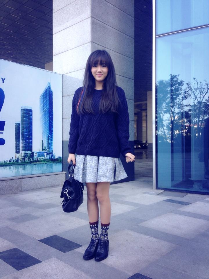 Áo sơ mi, áo len to hơn cỡ người một chút và kín cổ cũng là một bảo bối cho những cô nàng ngực nhỏ. Khi chọn áo len, Văn Mai Hương thường chọn váy cực ngắn nhằm kéo sự tập trung lên gương mặt hoặc xuống đôi chân. Cô nàng cũng nghiền sơ mi trắng dáng suông để mix cùng quần hoặc chân váy.