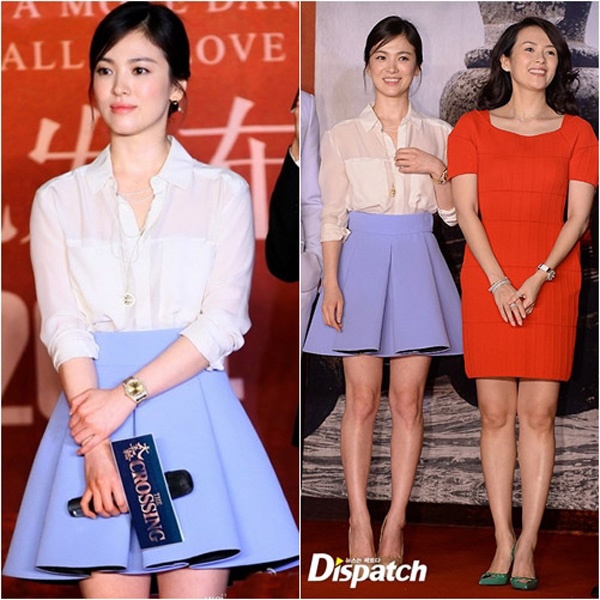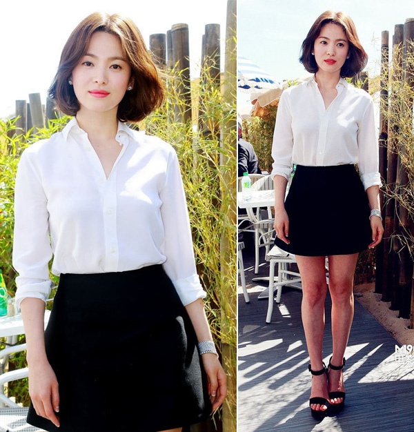 | Trong bất cứ sự kiện nào, Song Hye Kyo đều chọn phong cách thanh lịch nhưng không kém phần quyến rũ và gợi cảm. Một bí quyết khiến Song Hye Kyo luôn cuốn hút là thường xuyên mặc váy ngắn vừa vặn để tạo cảm giác cao ráo hơn. |