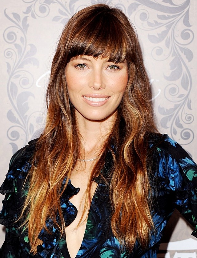 | Jessica Biel với phần mái ngang dày dặn giúp che vầng trán rồng. |