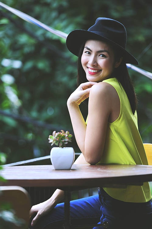 Với cách chụp ảnh này, gương mặt Hương Giang trông thon nhỏ hơn.