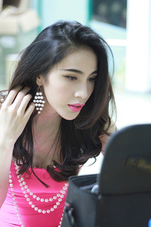 | Với cách chụp ảnh này, gương mặt của Kỳ Duyên cân đối hơn. |