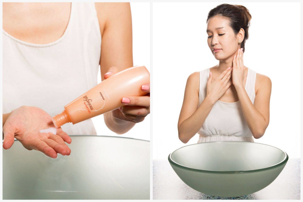 | 1. Bước rửa mặt nháp Phụ nữ Hàn thường rửa mặt hai lần, và bước rửa mặt đầu tiên của họ là dùng loại dầu tẩy trang, kết hợp với nước ấm để làm sạch BB cream cũng như vùng trang điểm cho mắt và môi. |
